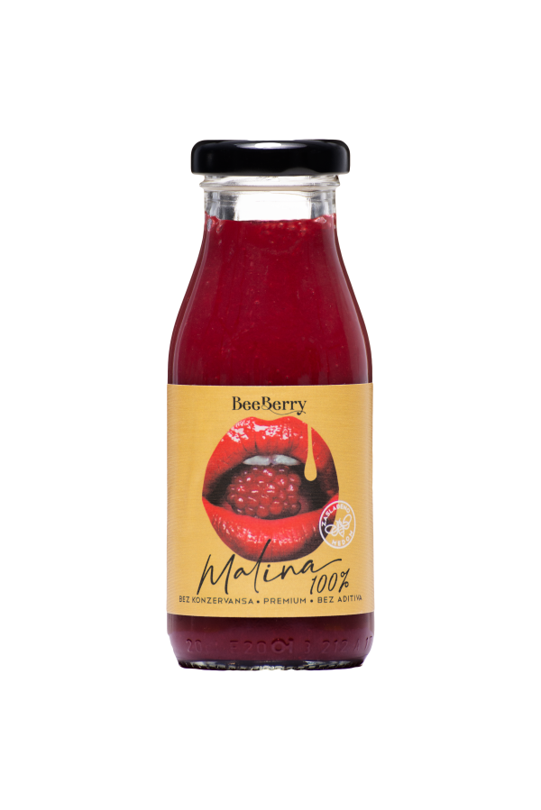 Raspberry premium 0.2 is a natural raspberry juice made from the best variety, Willamette, with Beeberry plantation. Raspberry juice enriched with acacia honey will fill all your senses and refresh your body. It is pasteurized and contains no preservatives, additives or added sugars.