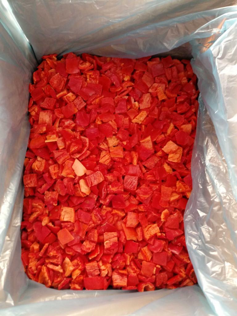 Deep-frozen fresh red pappers, cut into cubes 20x20mm.