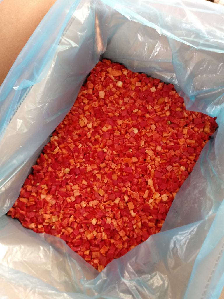 Deep-frozen fresh red pappers, cut into cubes 10x10mm.